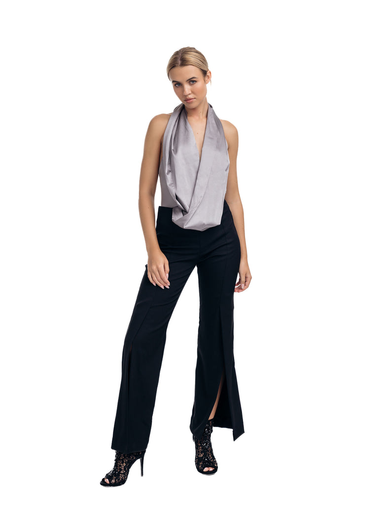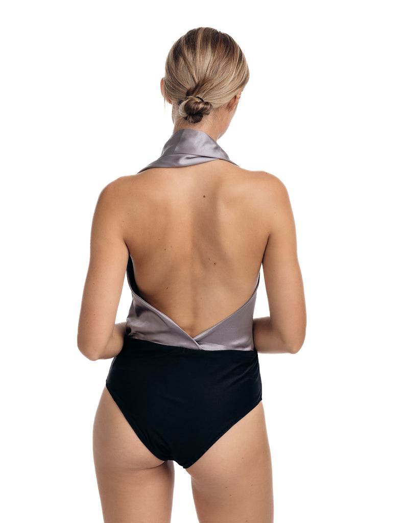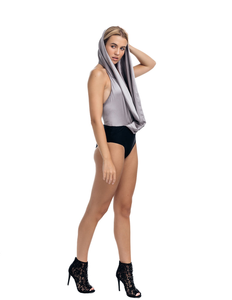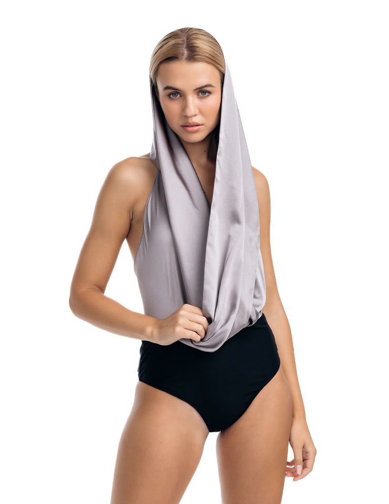 Crafted from a luxurious stretch silk charmeuse, the Sera Bodysuit features a halter style and a multi-way drape that can twist in at least 3 different ways around the body. Its versatile design makes it a statement piece destined to be loved and treasured for memorable moments.